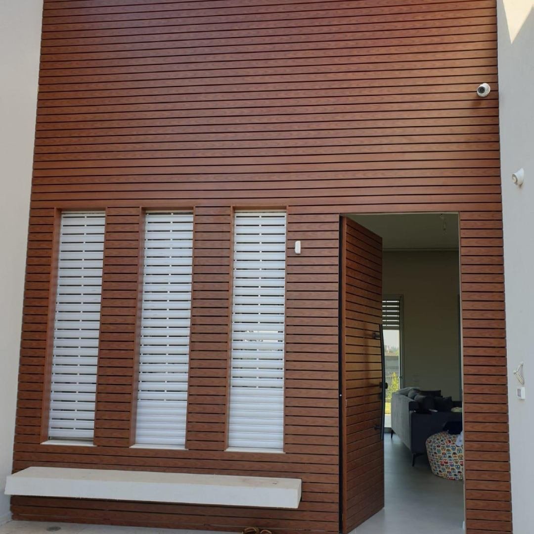 This profile is ideal for both interior and exterior cladding. It is slightly wider than the Click 40, making it suitable for covering more substantial surfaces. It can cover cracks, peelings, and marks on walls without the need for wall treatment. It can be used for pergolas, fences, doors, ceilings, and both interior and exterior walls. It comes in different shades of wood and other colors or can be painted in a custom color. The installation is effortless, and the finishing looks seamless without any noticeable screws or marks.