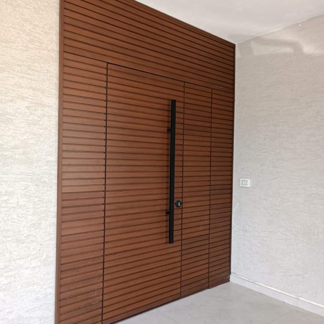 This profile is ideal for both interior and exterior cladding. It emulates the same width as the Click 40 profiles, but it is fully enclosed and works better for exterior cladding, perfect for backyard walls and doors. It can also be used in living rooms or offices that require a “warmer” look. It comes in different shades of wood and other colors or can be painted in a custom color.